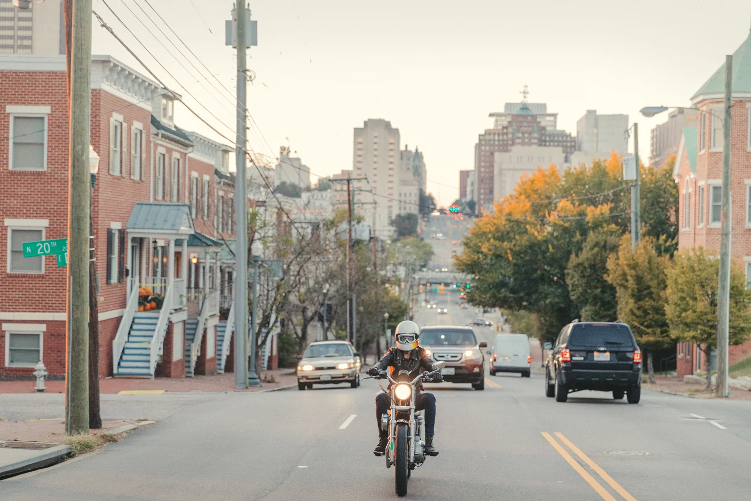 Customer and RVA Litas founder @rollinsam2 on her Sporty, coming up Broad Street into Church Hill, RVA. Photo @nickdavis_rva
